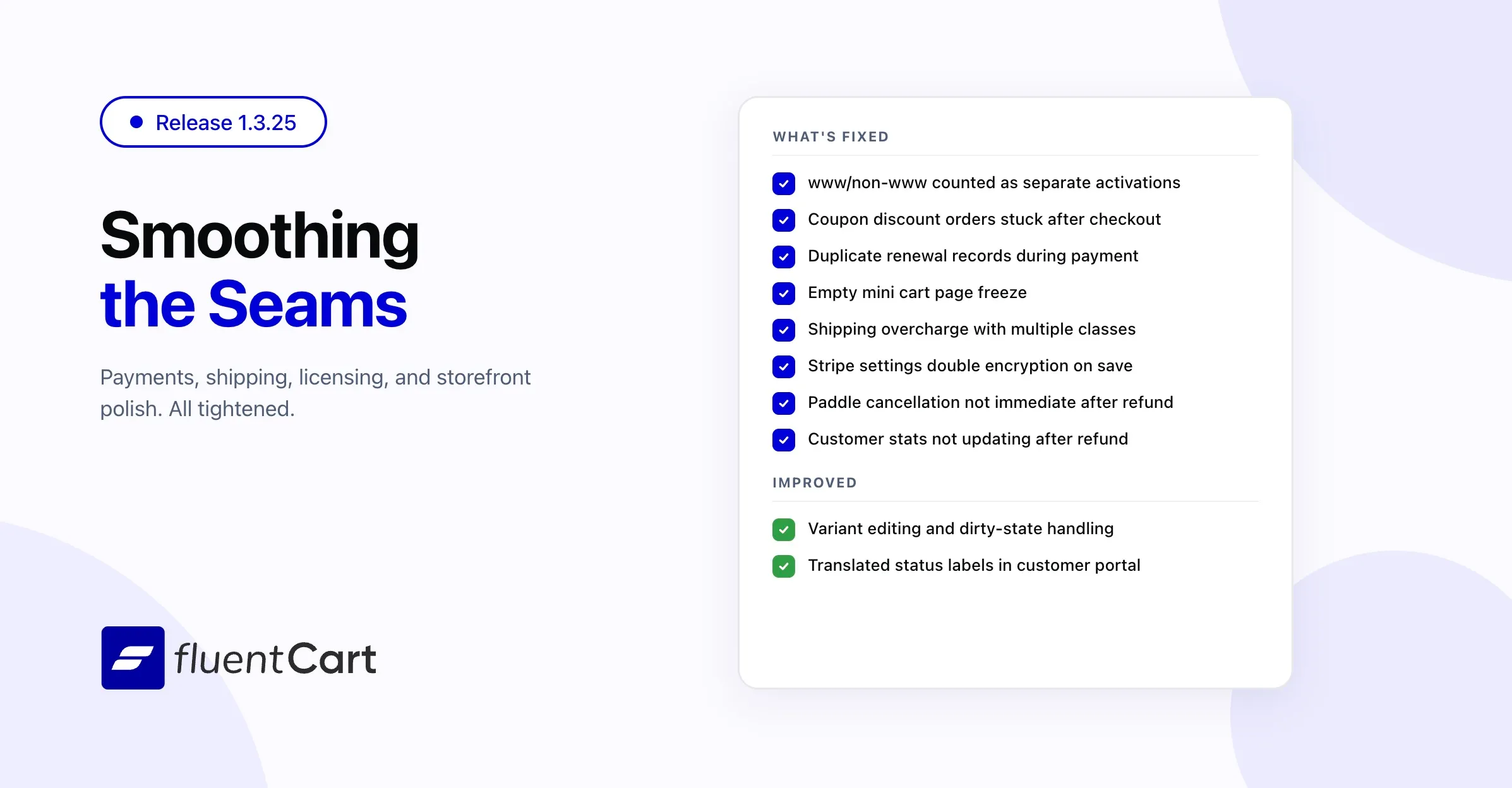 FluentCart 1.3.25 smoothing the seams
