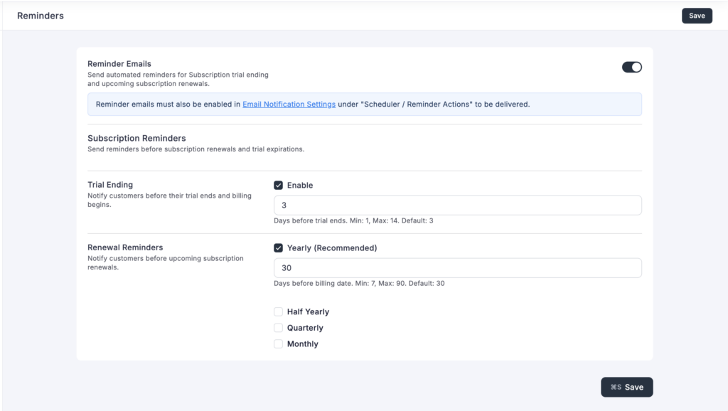 Another key addition in this release is scheduled reminder emails for payments and subscriptions.